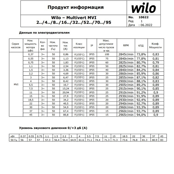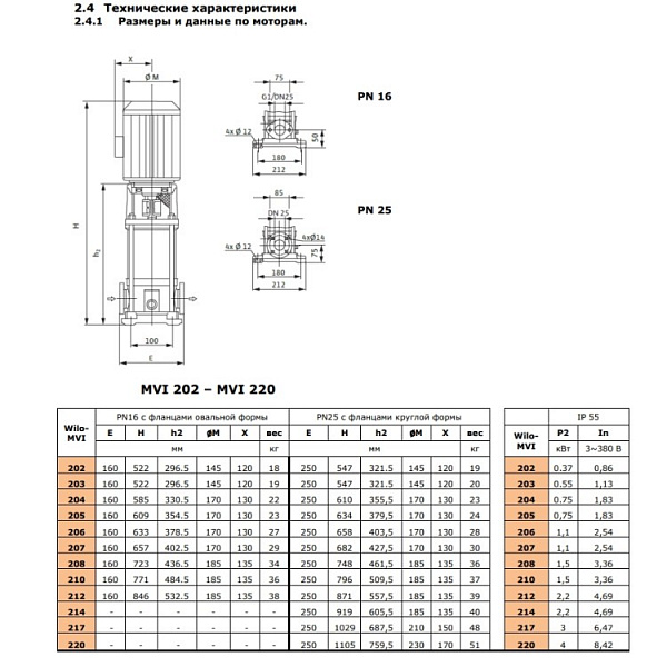 Вертикальный многоступенчатый насос Wilo MVI 207-3/16/E/3-380-50-2
