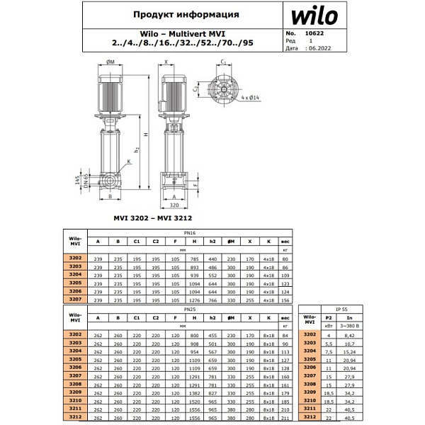 Вертикальный многоступенчатый насос Wilo MVI 5206-3/16/E/3-380-50-2